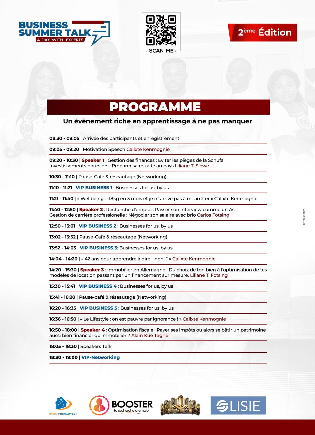 Cet événement de type business forum qui touche les volets tels que l'entrepreunariat, la rechereche d'emploi, le developpement de la carrière professionnelle, l'investissement en bourse, l'acquisition immobilière et les financements y afferant a connu un grand succès au coeur d'un public acceuillant qui a pu se désalterer de connaissances en abondance.
